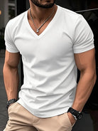 Con il suo taglio moderno e aderente, questa t-shirt valorizza delicatamente la tua silhouette senza ostacolare i tuoi movimenti. Il suo scollo a V aggiunge un tocco di raffinatezza a uno stile informale. Un capo lusinghiero che accresce la tua sicurezza e il tuo fascino.
